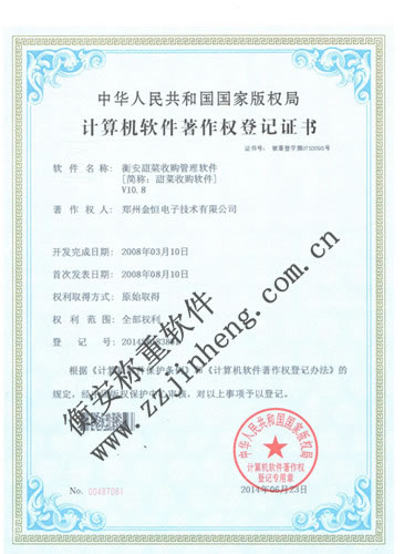 2014年6月,衡安稱重軟件成功取得由國(guó)家版權(quán)局頒發(fā)的7項(xiàng)計(jì)算機(jī)軟件著作權(quán)登記證書。軟件著作權(quán)的成功申報(bào),標(biāo)志著公司自主創(chuàng)新能力的顯著增強(qiáng),有利于提升公司的核心競(jìng)爭(zhēng)力,形成持續(xù)創(chuàng)新機(jī)制,保護(hù)公司自主知識(shí)產(chǎn)權(quán)。