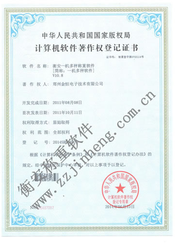 衡安稱重軟件成功申請(qǐng)軟件著作權(quán)