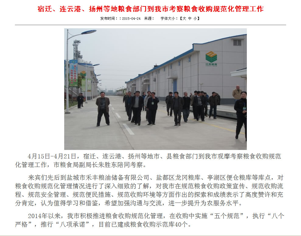 熱烈祝賀衡安稱重軟件承建的鹽城糧亭湖區便倉糧庫的“一卡通”糧食收購系統成為江蘇省糧食收購標桿企業;4月15日-4月21日,宿遷、連云港、揚州等地市、縣糧食部門到鹽城市觀摩考察糧食收購規范化管理工作,市糧食局副局長朱勝東陪同考察。