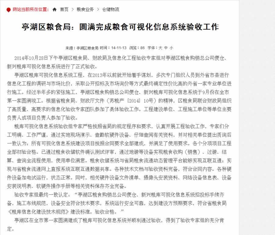 賀衡安稱重軟件助鹽城亭湖區便倉糧庫成為行業標桿