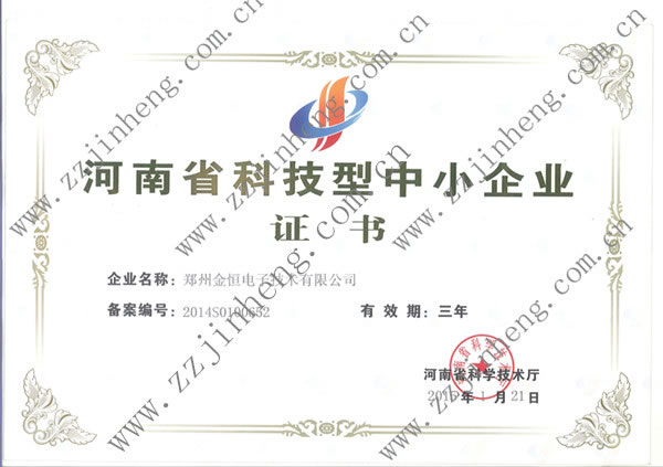 祝賀金恒公司(衡安稱重軟件)獲得河南省科技型中小型企業(yè)證書