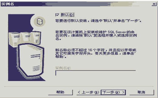 ?第6步:選擇“默認”的實例名稱,這時本SQL Server的名稱將和Windows 2000服務器的名稱相同。SQL Server 2000可以在同一臺服務器上安裝多個實例,也就是你可以重復安裝幾次,如果您的計算機上已經安裝了數據庫實例,“默認”實例可能不可選擇,這時您就需要選擇不同的實例名稱了。實例名會出現在各種SQL Server和系統工具的用戶界面中,名稱越短越容易讀取。實例名稱不能是“Default”等SQL Server的保留關鍵字。