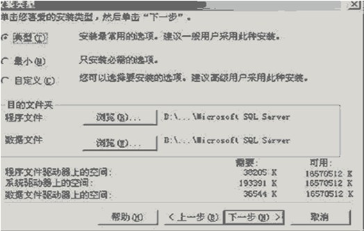 第7步:在安裝類型對話窗口中,可以設定多個選項。比如安裝組件的多少,以及安裝的路徑等,請根據實際需要選擇.例如安裝到D:\MICROSOFT SQL SERVER 2000\......